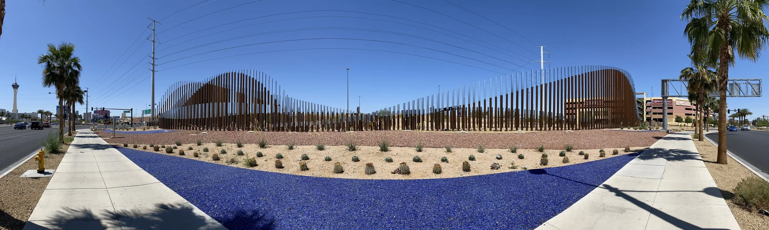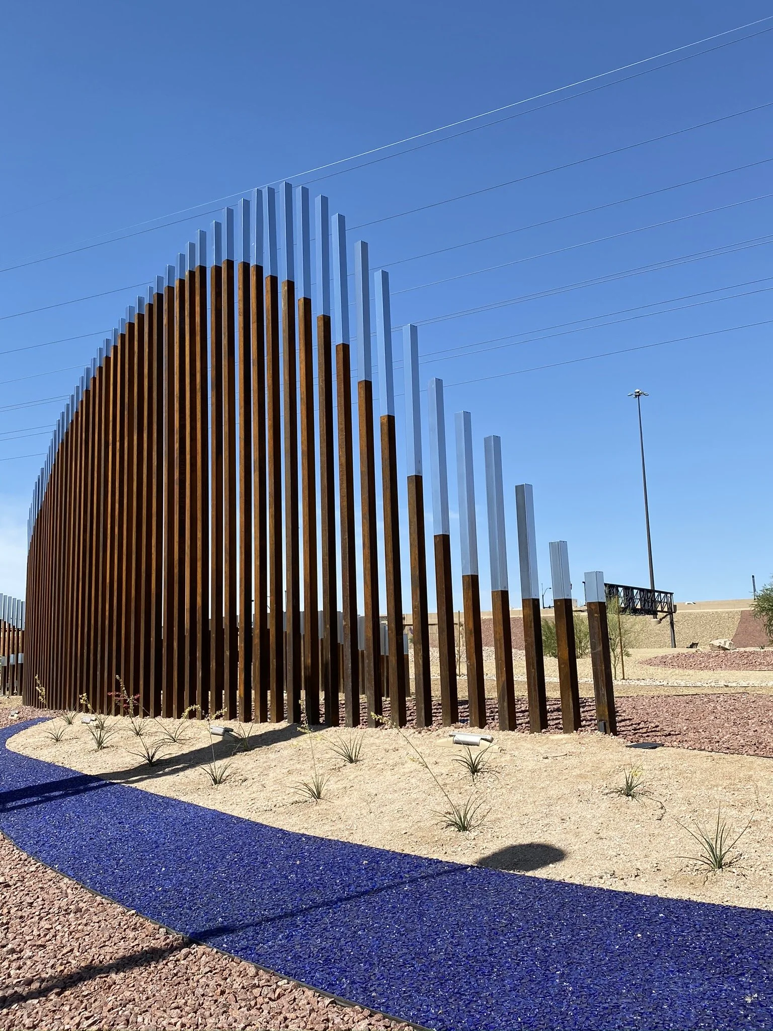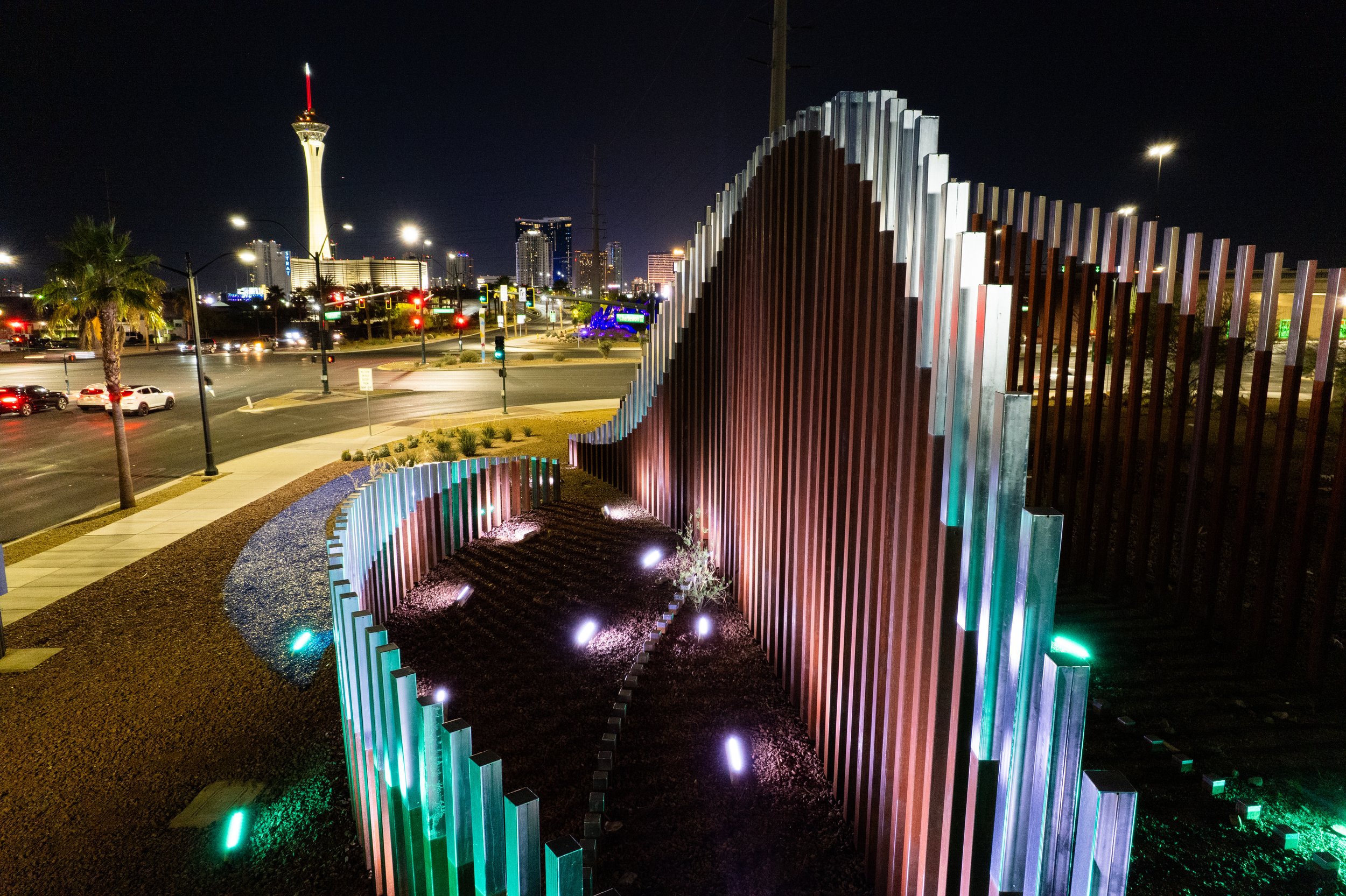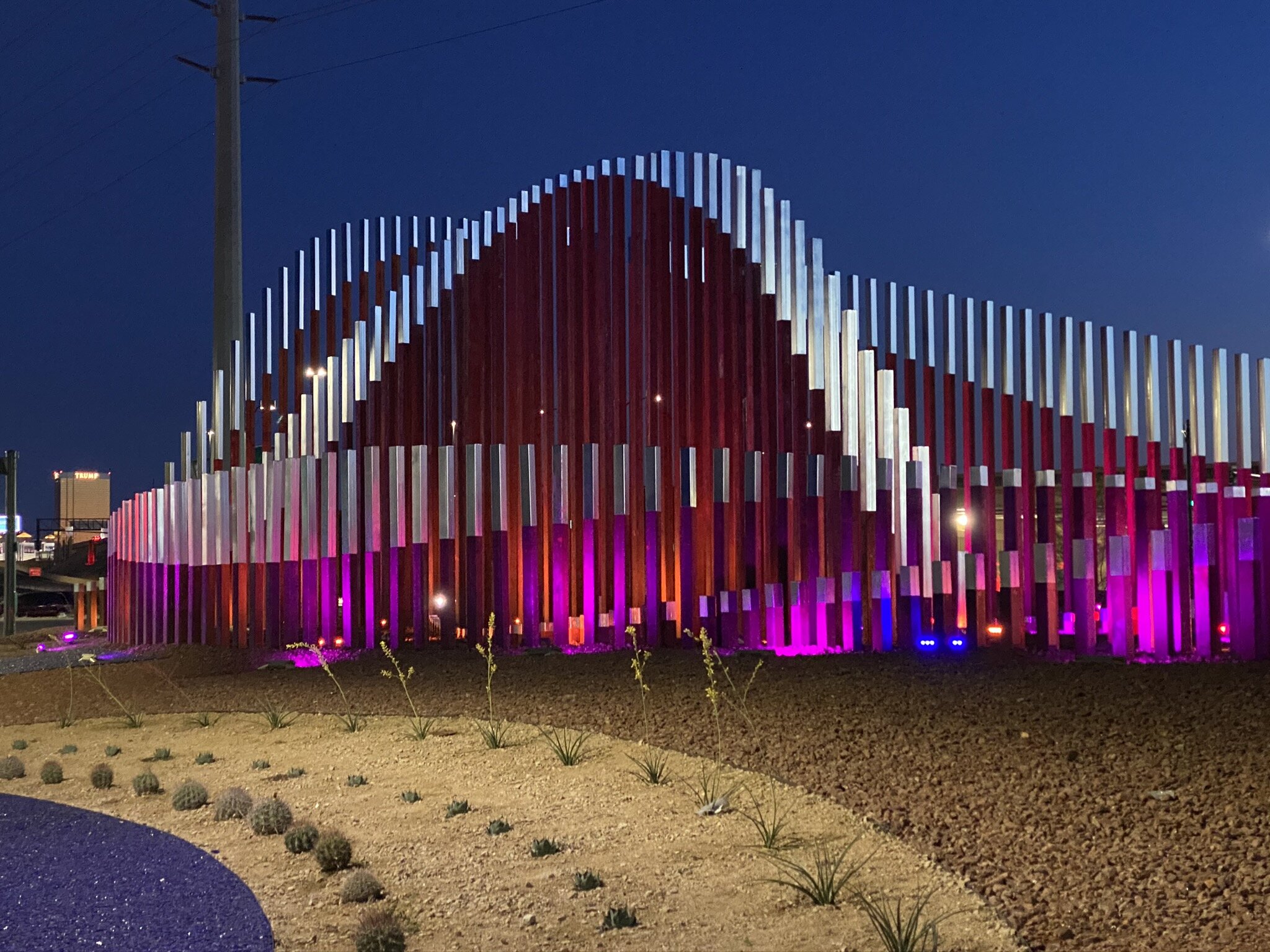 It takes to two to get the spark going, but you have to find the source; that’s where the reeds grow plenty. They sometimes call me the cold cathode, but I’m no playa, all I want to do is take a hot dip. Hot Dip is the second landmark sculpture PUNCH designed as part of Project Neon. This undulating steel sculpture plays off natural desert dune formations and creates different colors (as the chrome plated tips fade in the sky during the day or reflect the color changing RGB LED lights at night) to create dynamic patterns, reflections, and patterns for pedestrian and vehicular traffic to experience. Hot Dip varies in height and size, but is approximately 35'-0"h x 250'-0" linear feet overall. www.ndotprojectneon.com